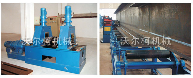 該機是用于矯正焊接型鋼翼緣板變形的專用設備, 有機械、液壓矯正二大類。機械式矯正機結構簡單,操作方便可靠。液壓矯正機矯正能力大、自動化程度高,為國內首創。矯正輪與主動輥采用優質合金鋼,熱處理加工而成,經久耐用。